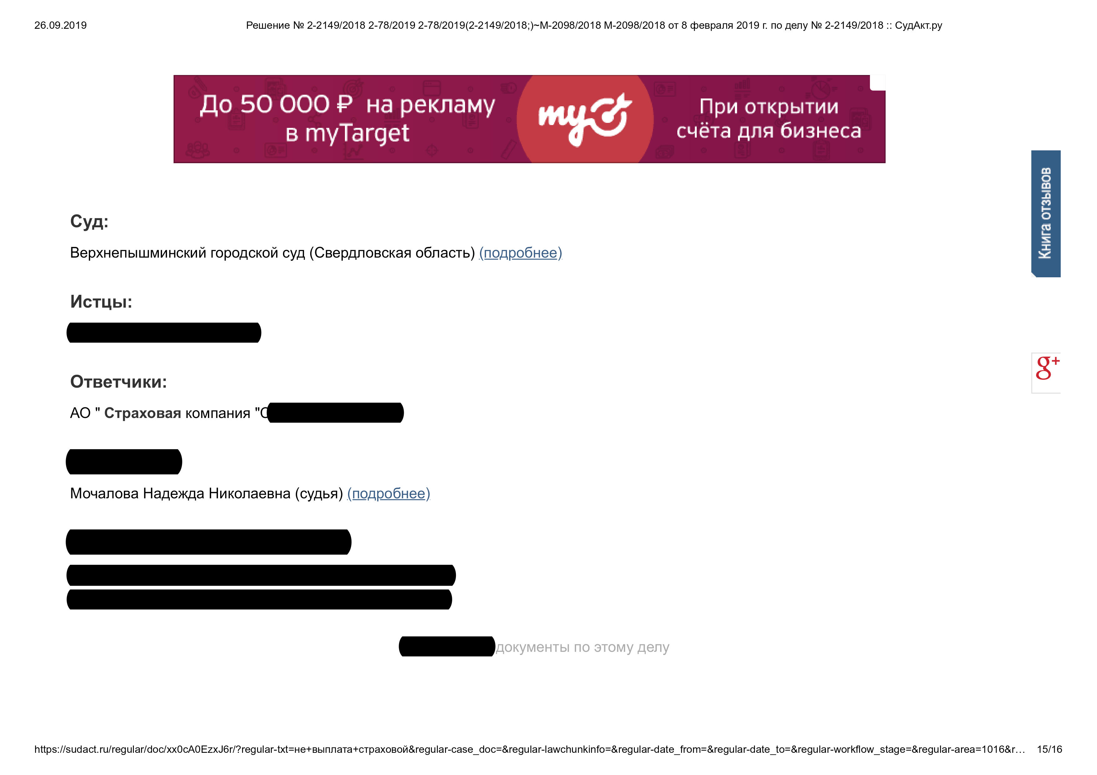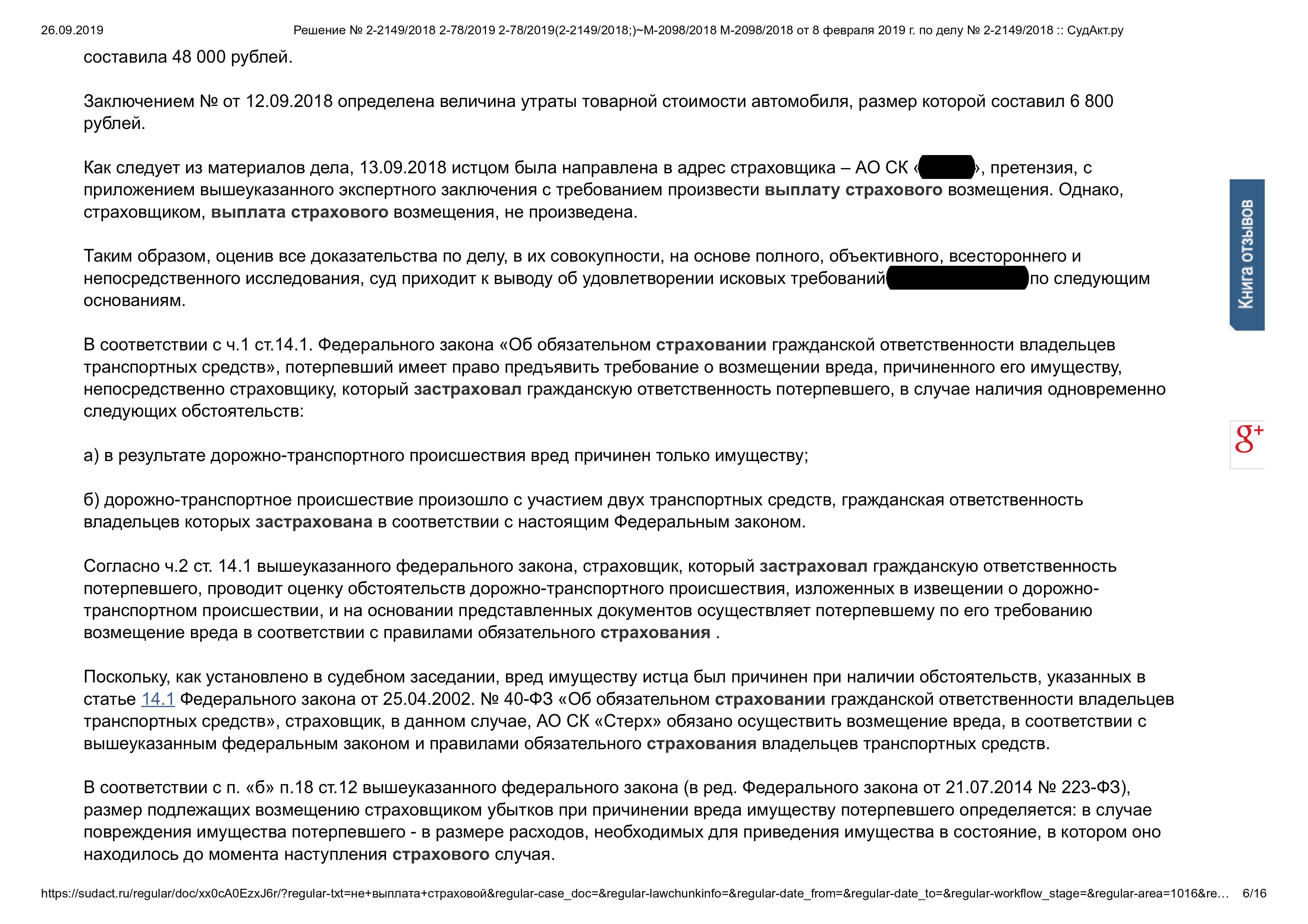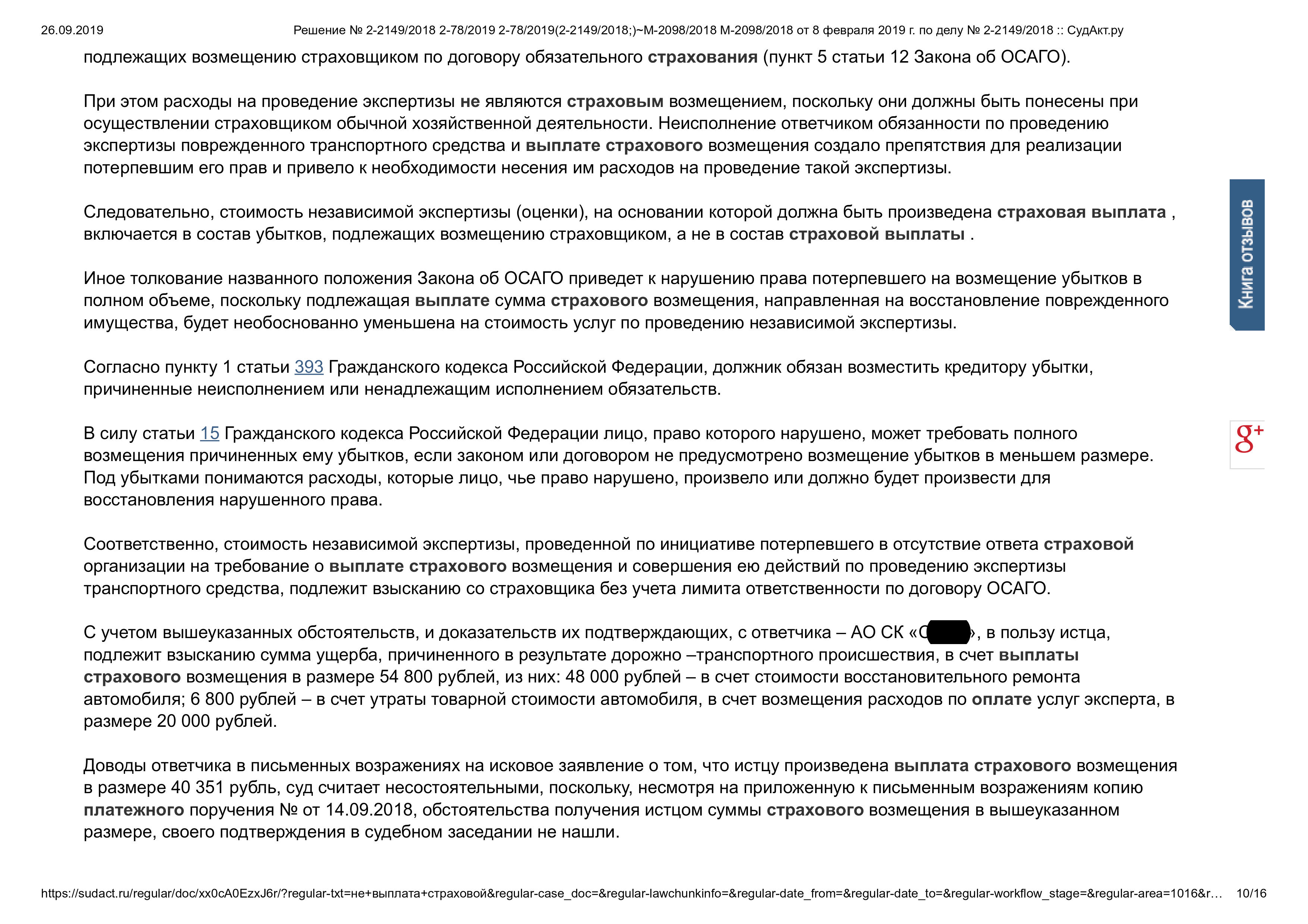 • Защищены права клиента по регрессному иску страховой компании