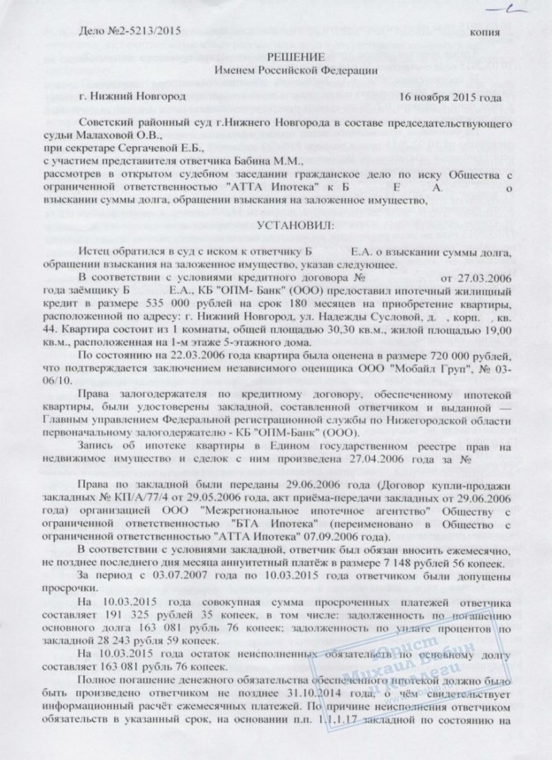 Отстояли ипотечную квартиру которую банк отбирал за долги