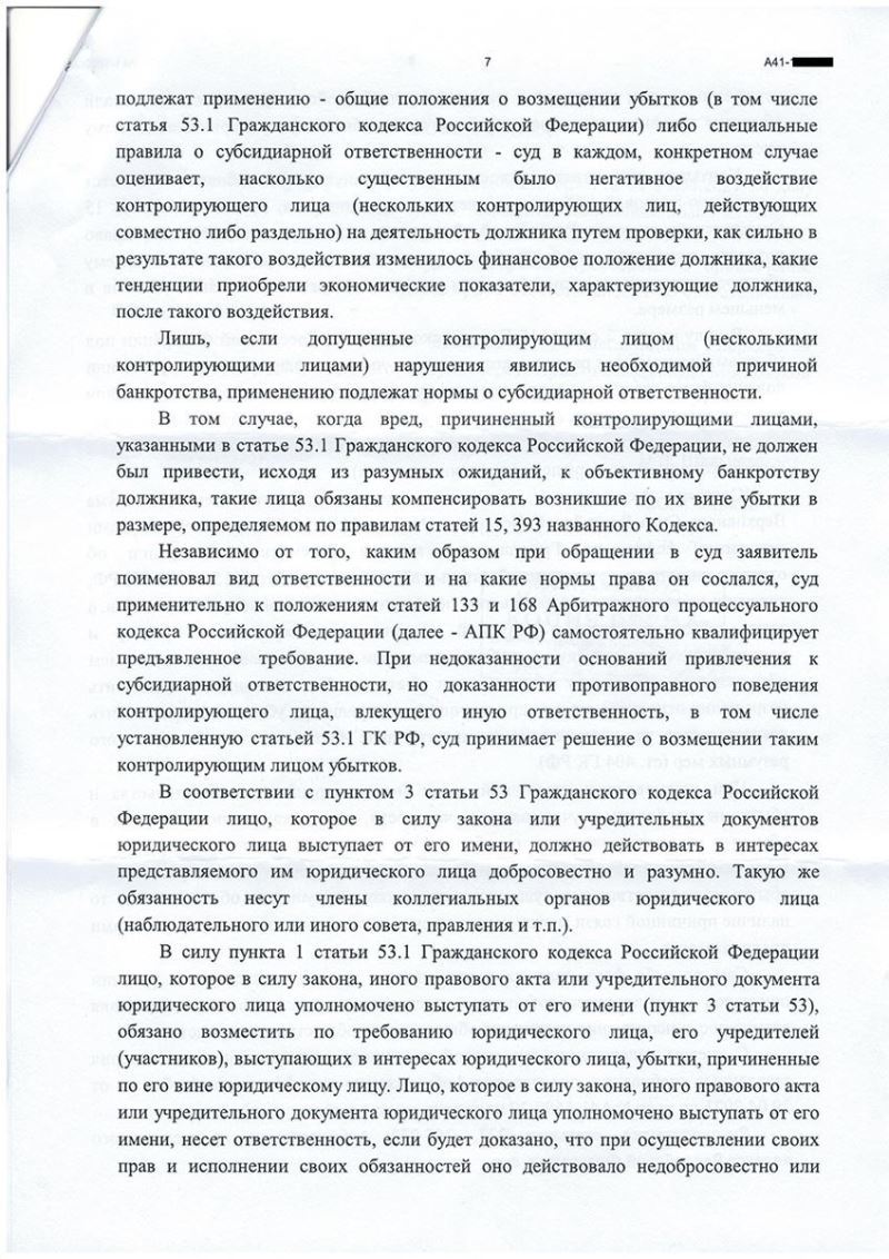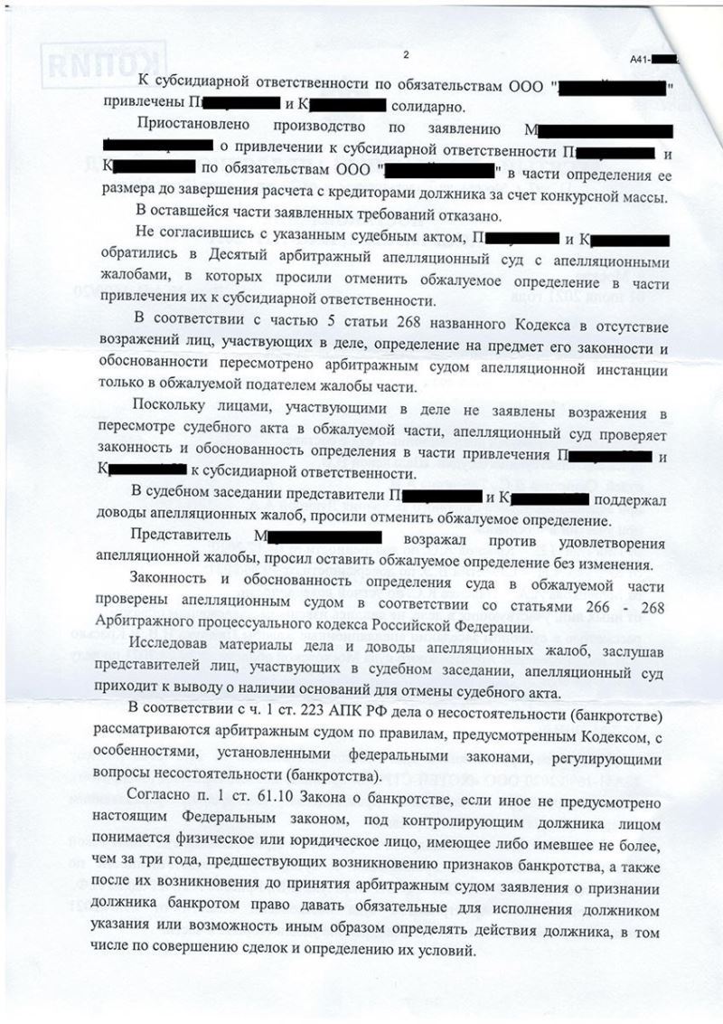 Клиент освобожден от субсидиарной ответственности по долгам компании