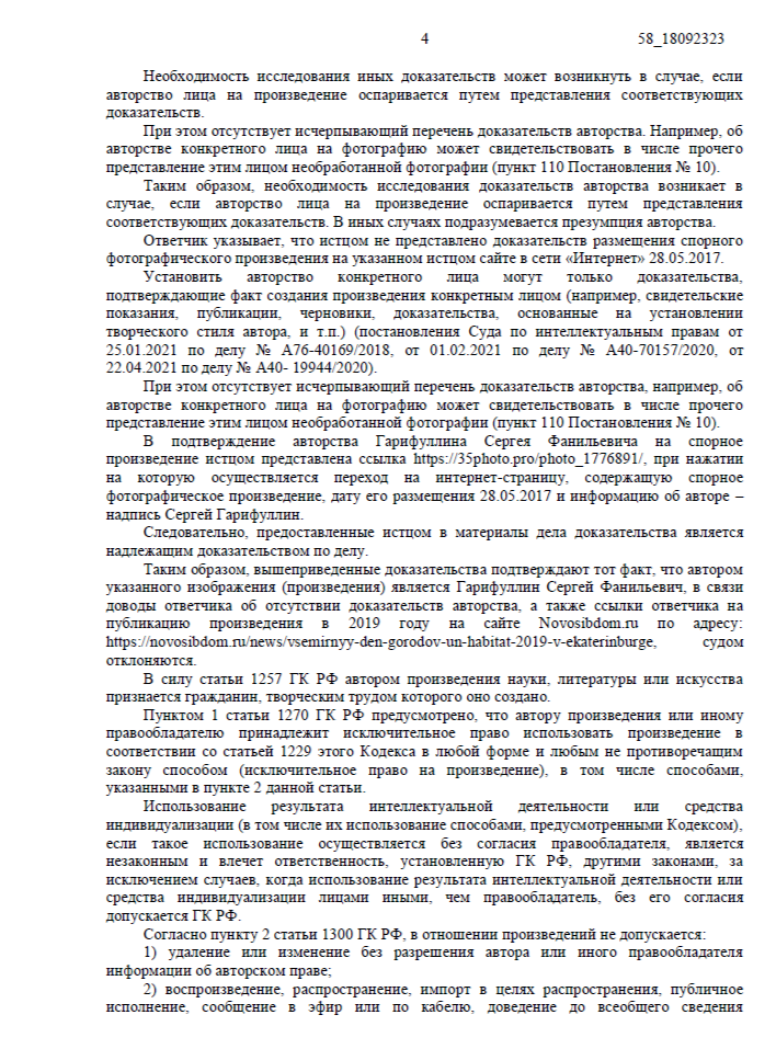 Однако популярность фотографий неизбежно приводит к рискам — изображения нередко используют без разрешения. Чтобы защитить свои права и сохранить контроль над собственным творчеством, Сергей обратился к нам. За юридическое сопровождение отвечал Егоров Андрей, который помог зафиксировать нарушения, подготовить необходимые документы и выстроить стратегию защиты.